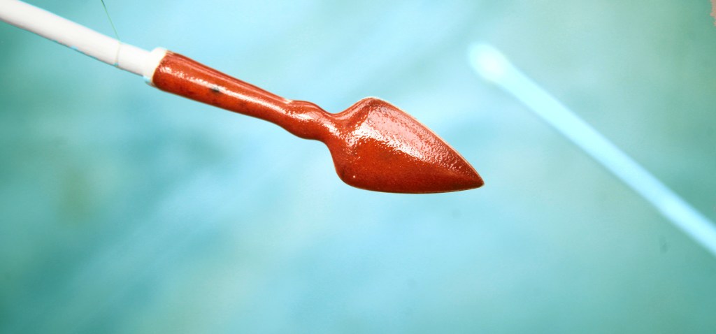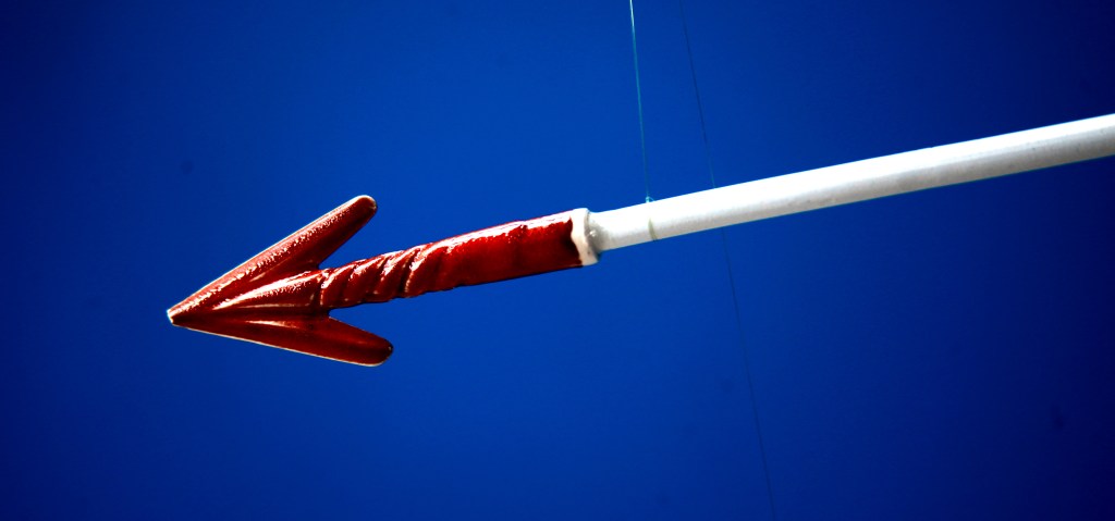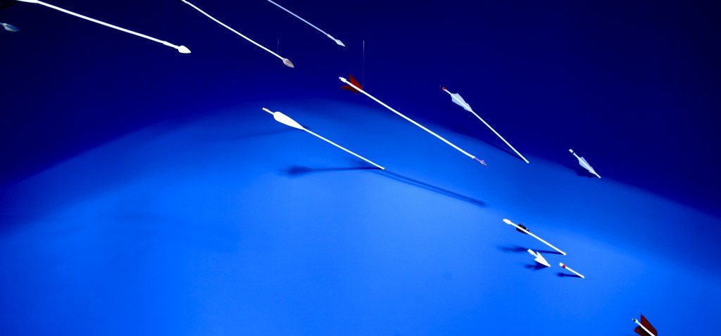 Artistul folosește atributele săgeții și materialului din care aceasta este făcută pentru a direcționa atenția privitorului către puterea de expresie a procesului său de materializare a ideilor.
