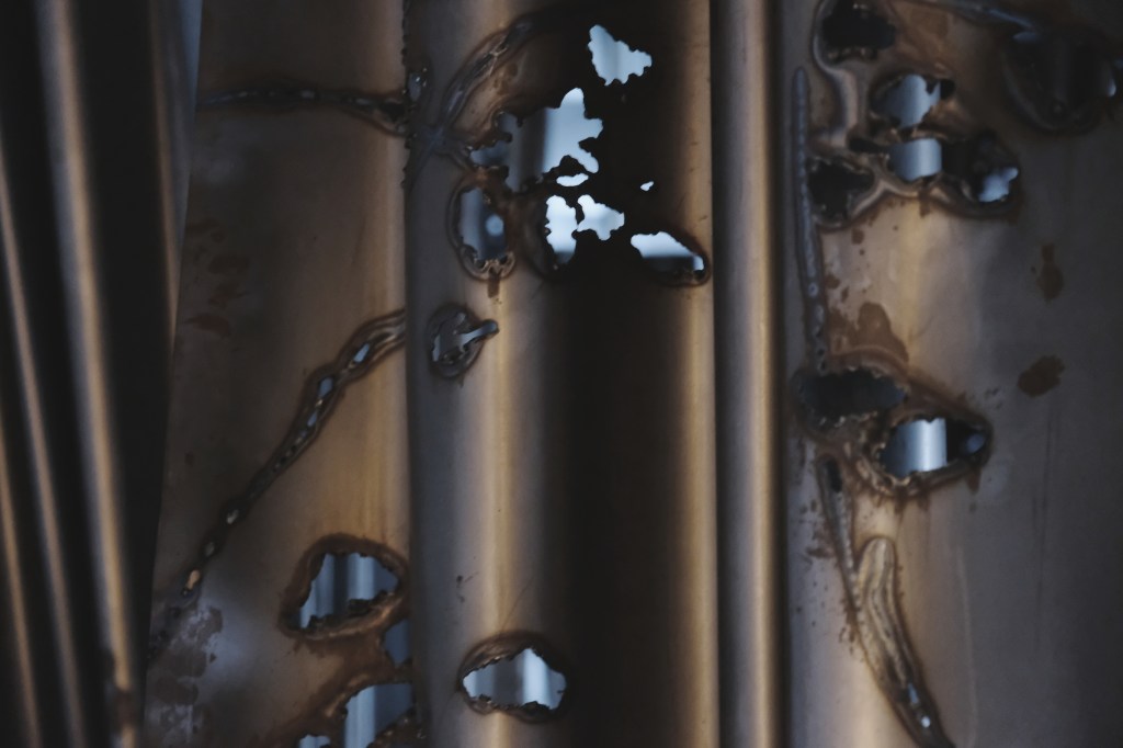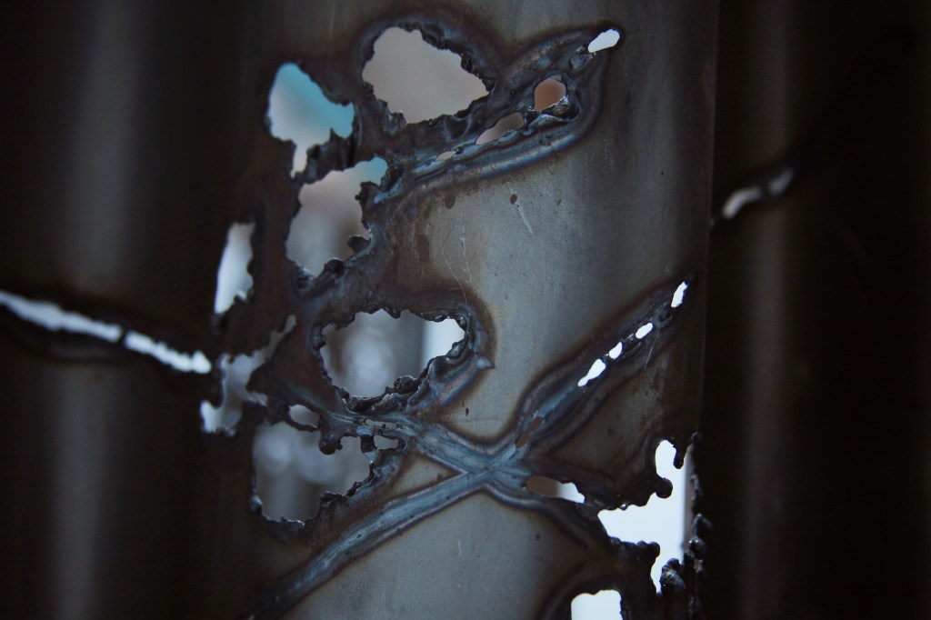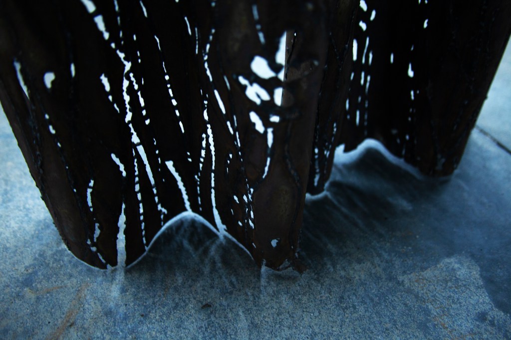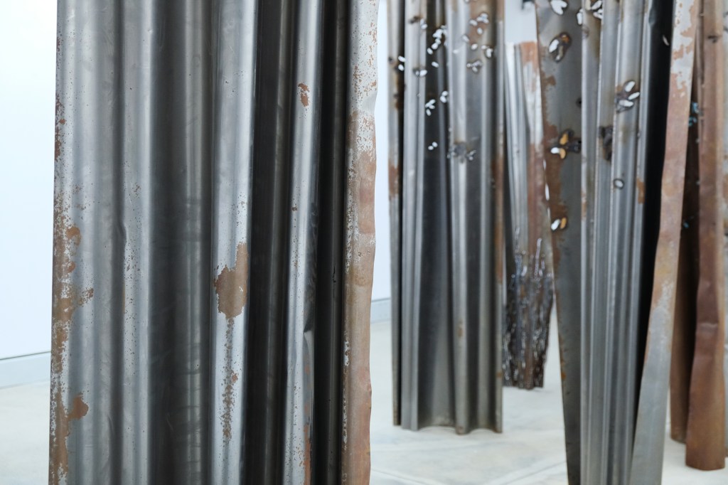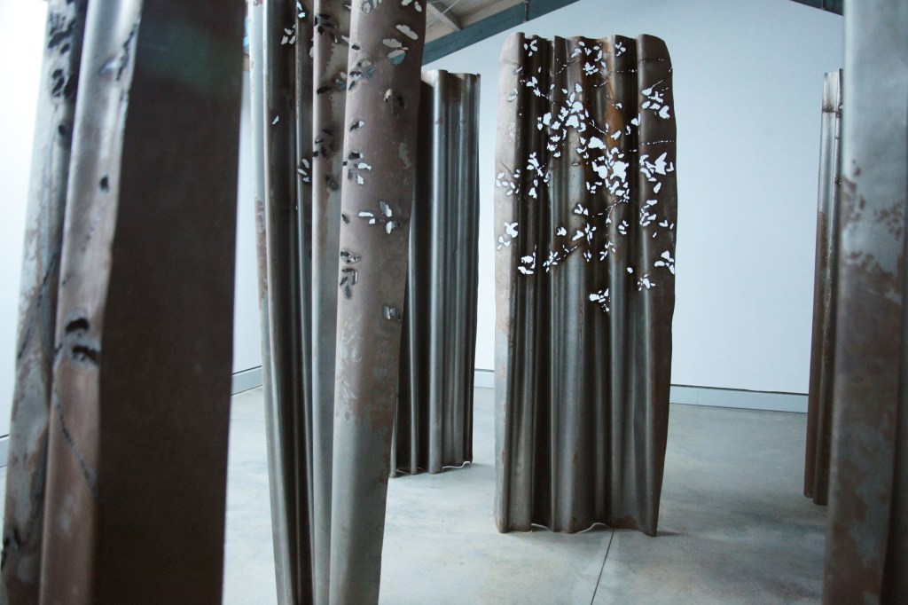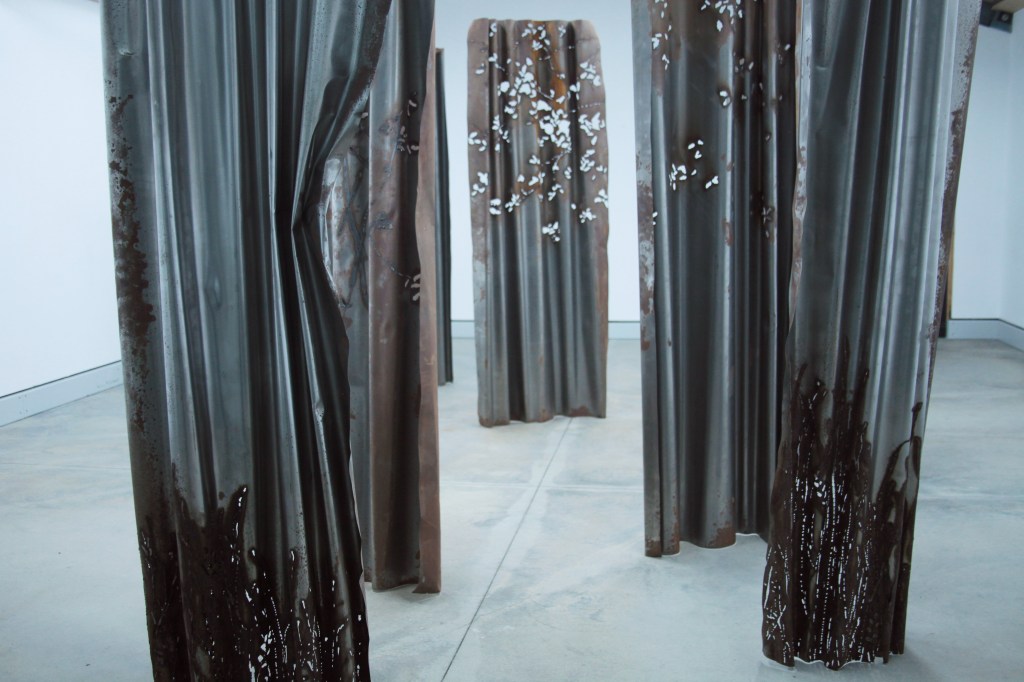 Puterea de expresie a lucrărilor ei este dramatică, mai ales în contrast cu lumina, „printre drapaje grele din fier, care se înalță obturând câmpul vizual, singurele elemente care permit ochilor să treacă de răcela metalului sunt decupajele inspirate din elemente naturale”.