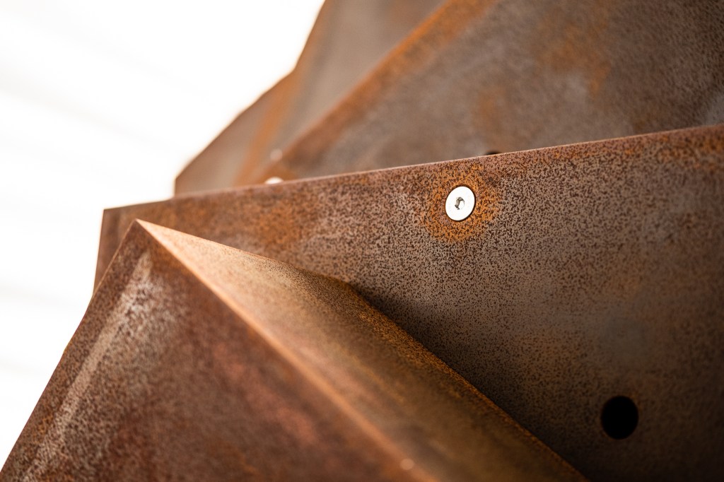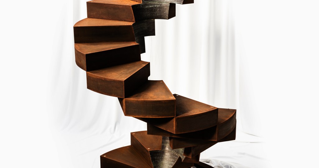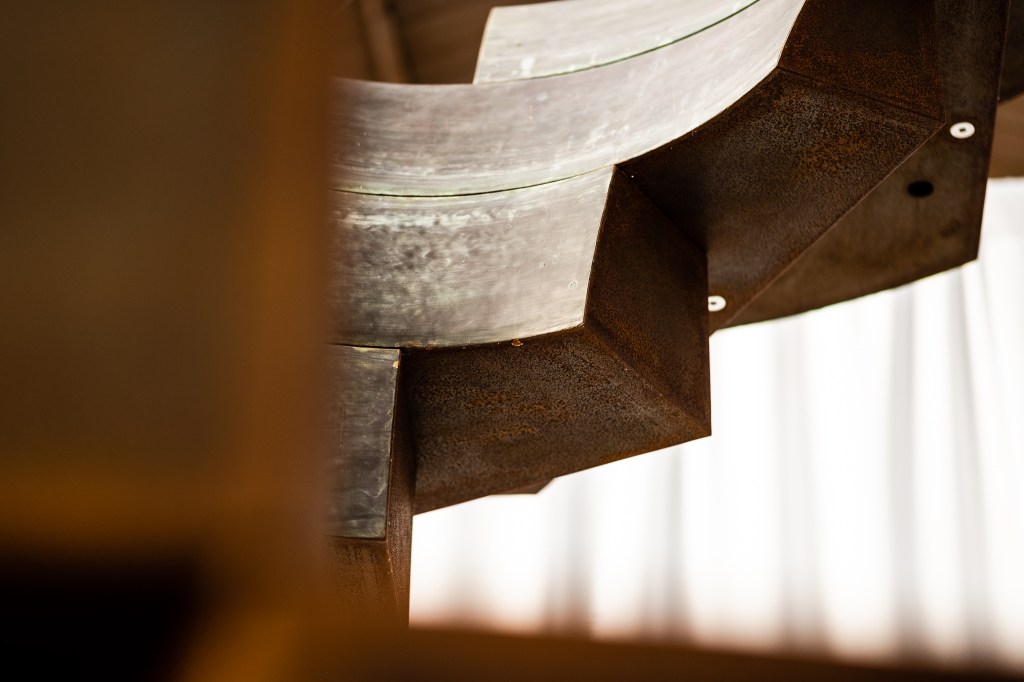 Volumetria scărilor este tăioasă, fiind construite atent prin sudură în tablă de corten cu cupru.