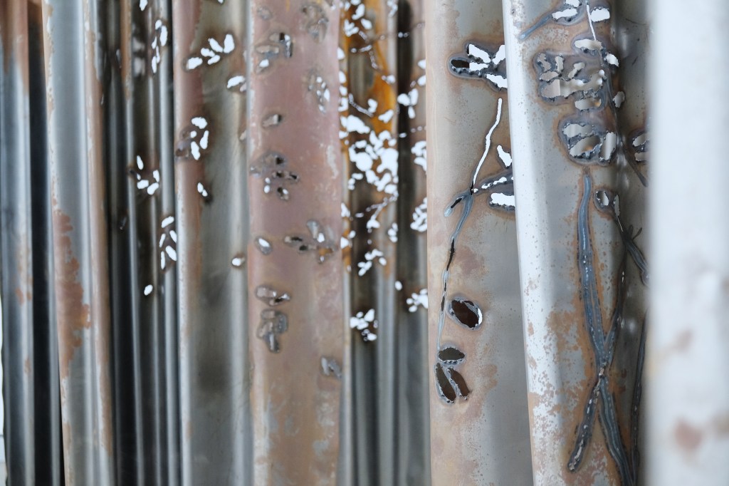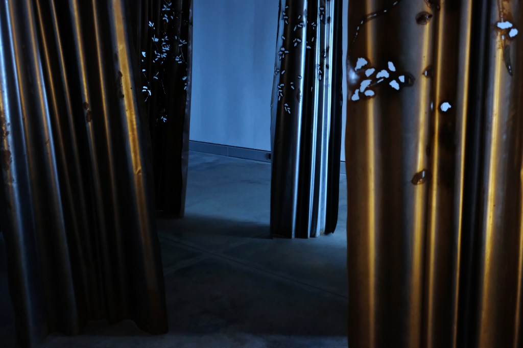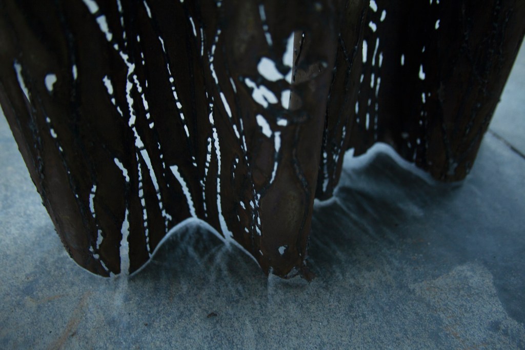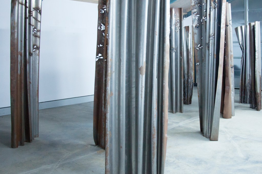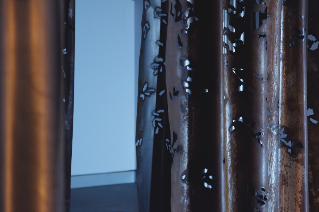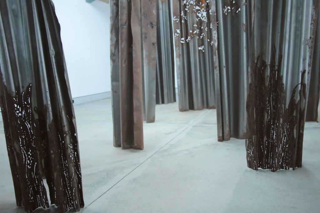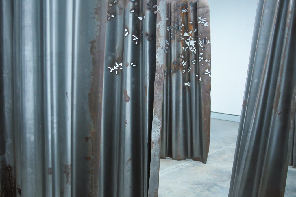 EN// “To the secret place” is a metaphoric projection of an inner place of encounter with God. Through heavy iron drapery that closes sight, the only elements that allow the eyes to get past the cold metal are the natural elements, traces of the initial garden that today still create an encounter place with the Creator.