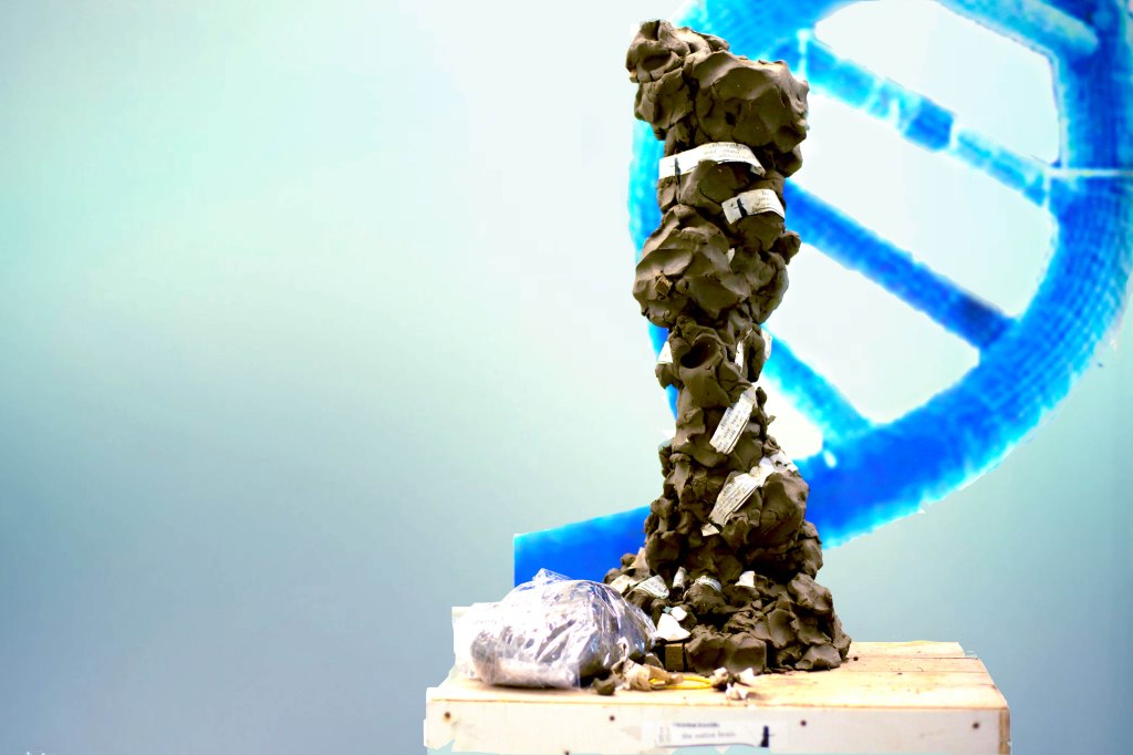 Lutul este materia de bază pentru foarte multe tehnici sculpturale sau ceramice și nu numai, dar în contextul instalației ”Sculpture for the mind”, lutul este zigotul, ”contextul în care se naște o nouă creație”. În cazul zigotului conținutul contează și nu forma lui, acolo este prima formare a ADN-ului, puțin mai târziu stratul său intern devine embrionul, iar stratul extern membranele sale care îl vor hrăni și îl vor proteja. Înțelegând această asociere, ni se descoperă puterea vizuală și semnificativă a acestei asocieri, anume transparența sensibilă a plexiglass-ului care poartă imprimat conținutul puternic al șirului de ADN, juxtapus peste imaginea aparent minimalistă a aglomeratului din lut, fără o formă precisă.